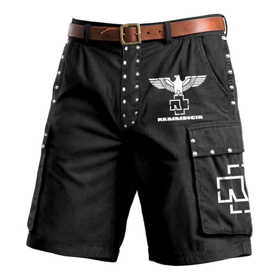 kurze hose,herren cargo-shorts mit rammstein-rockband-aufdruck vintage mehrere taschen nieten